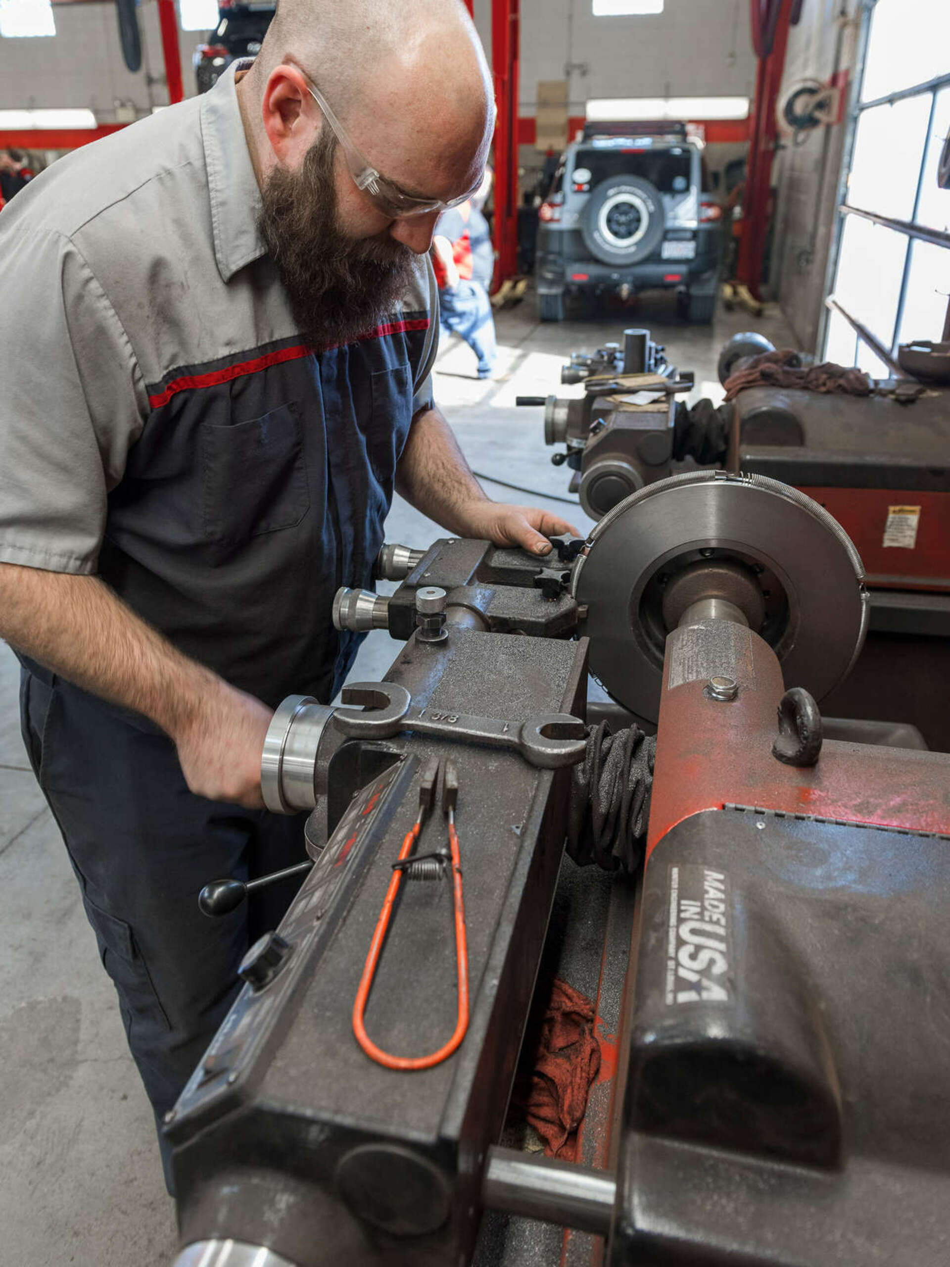 Hunter's Greg Meyer, Product Manager for Brake Lathes, demonstrates to how get the best surface finish when cutting a brake rotor, using Hunter's Bench Lathe.