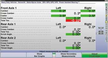 See live alignment readings from three axles at once