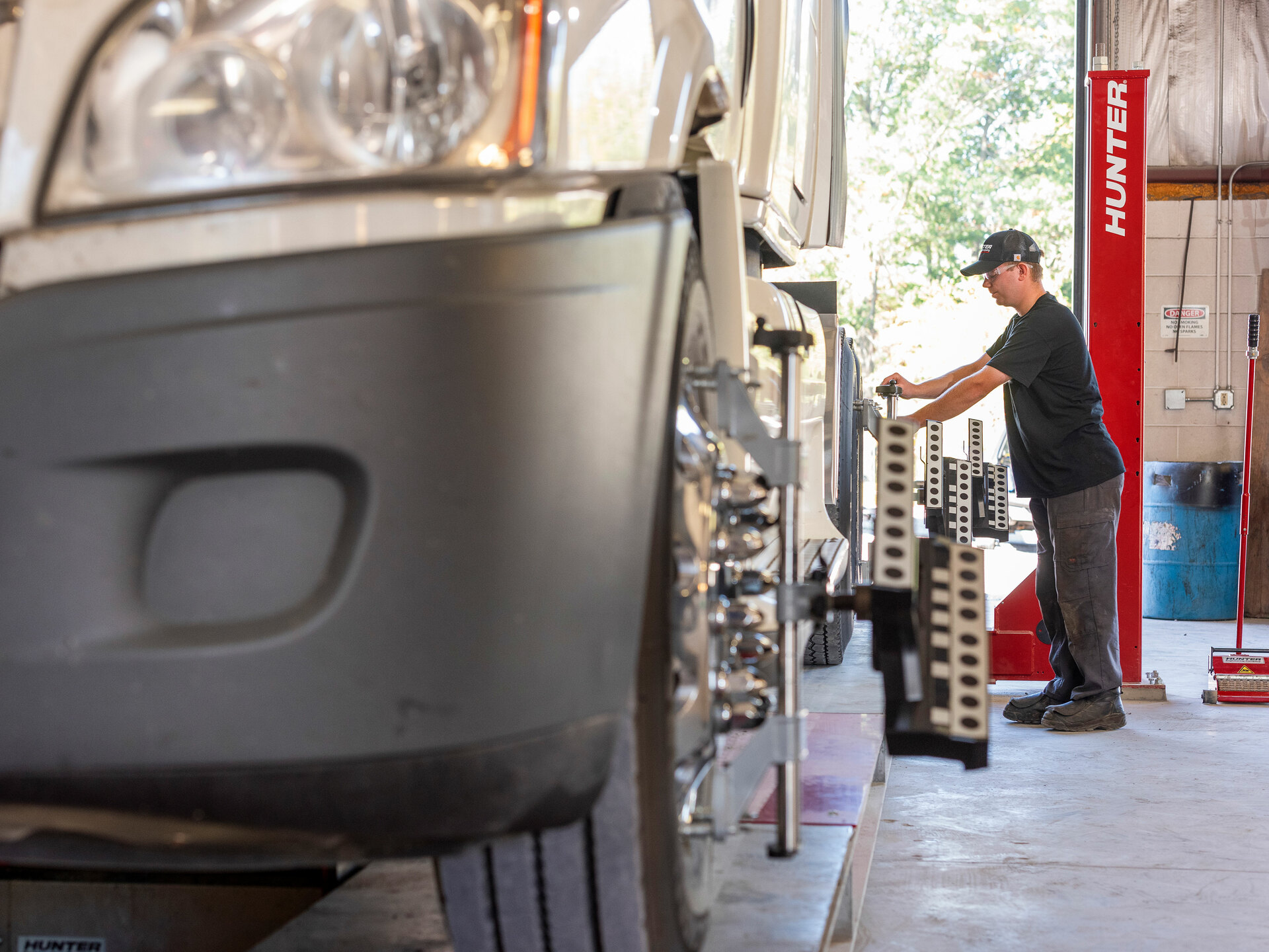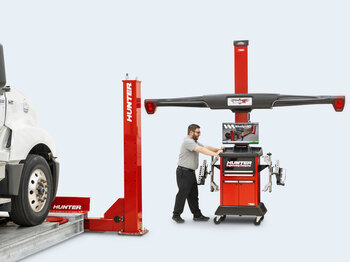 Fast and highly-capable alignment machine featuring Hunter's patented camera technology designed for heavy-duty semi truck and bus, medium-duty utility and fleet, and light-duty passenger vehicles.
