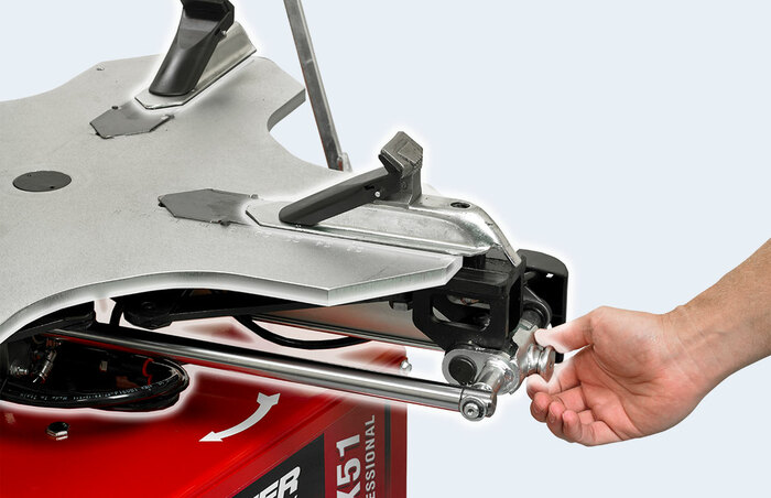 Der leistungsstärkste Abdrücker seiner Klasse verwendet Tastendrucksteuerung und eine einstellbare Drei-Wege-Schaufel für beste Reifenmontage. Schaufelschutzvorrichtungen sind Standard.